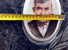 Первым делом мы замерили круглые портреты покойных на керамике. Старые пора было заменить, а новые предполагалось установить на то же самое надгробье, поэтому овалы должны быть идентичны предыдущим.