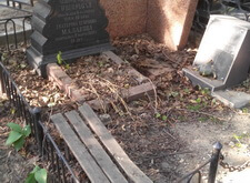 Старая могила, которая достаточно длительный период времени были без присмотра. Резкий контраст хорошего и дорого памятника и сильно отличающиеся по стилю пристройки более современных памятников. Нужно было убраться и перенести надпись с небольшого памятника на общую плиту.